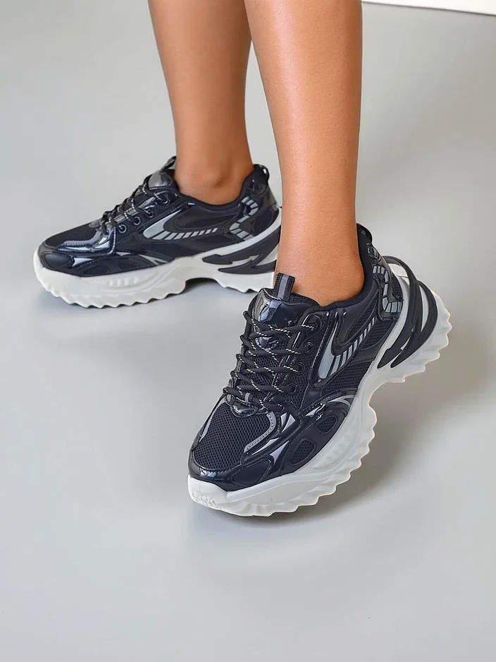 Fenomenalne sneakersy damskie na grubszej podeszwie - perfekcyjne połączenie stylu i komfortu. Obuwie wykonane z eko skóry i tkaniny. Model sznurowany, posiada eko skórzaną wkładkę. Idealne dla aktywnych osób!