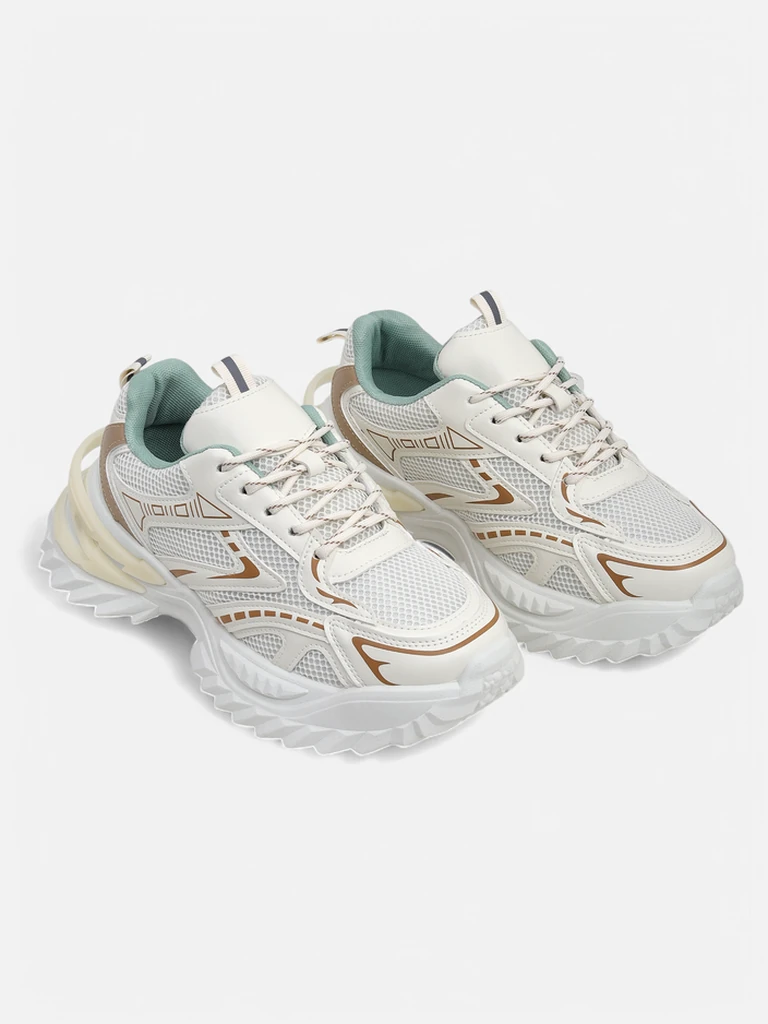 Fenomenalne sneakersy damskie na grubszej podeszwie - perfekcyjne połączenie stylu i komfortu. Obuwie wykonane z eko skóry i tkaniny. Model sznurowany, posiada eko skórzaną wkładkę. Idealne dla aktywnych osób!