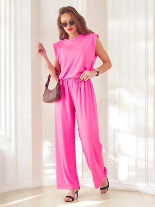 Royalfashion Női bordázott viszkóz szett, ujjatlan, harangszárú nadrággal