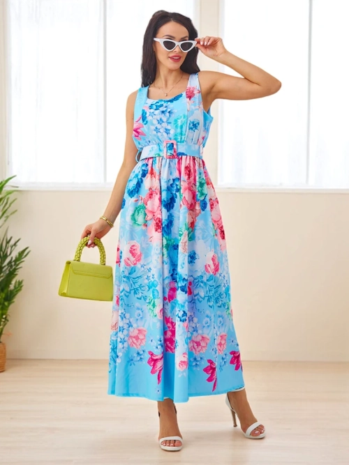 - Az elegáns női viszkóz midi ruha pántokkal és virágmintás övvel könnyed és nőies választás meleg napokra. A finom mintázat és a testhez simuló szabás stílusos és kényelmes megjelenést biztosít.