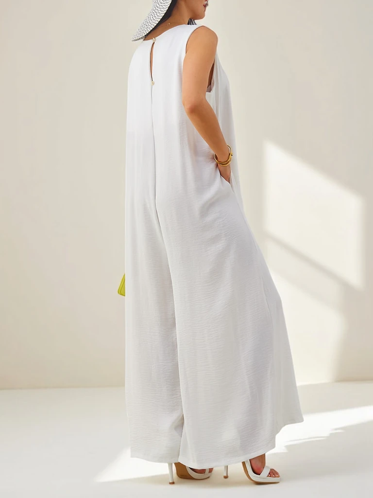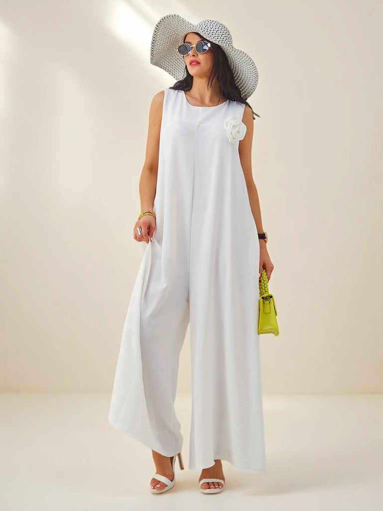 Artemisia Eleganza – fehér női maxi viszkóz kombidressz pántokkal
