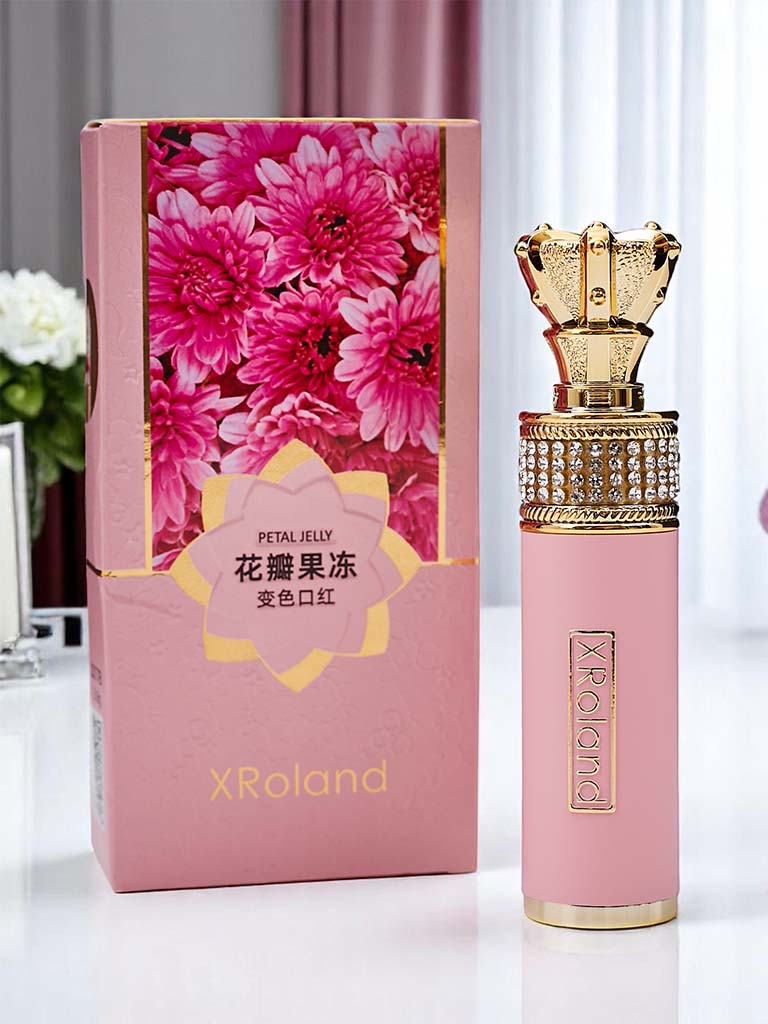 Áttetsző ajakfény beágyazott rózsaszín virágokkal