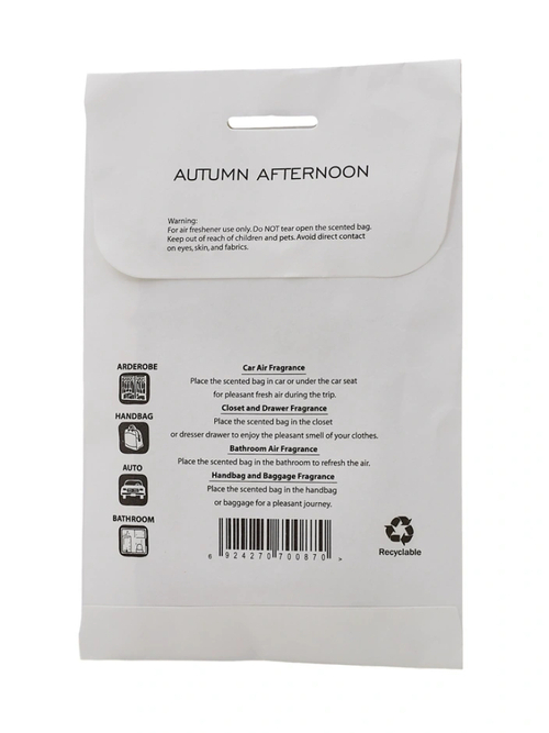 - A kellemes illatú tasakok ideális megoldást kínálnak autója, táskája, szekrénye vagy fürdőszobája kellemes illatozásához. Kompakt méretüknek köszönhetően hatékonyan semlegesítik a nem kívánt szagokat, friss és kellemes illatot hagyva maga után.