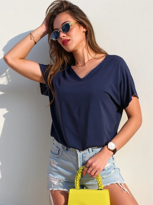 Royalfashion Női viszkóz blúz rövid ujjal és csillogó kivitelben