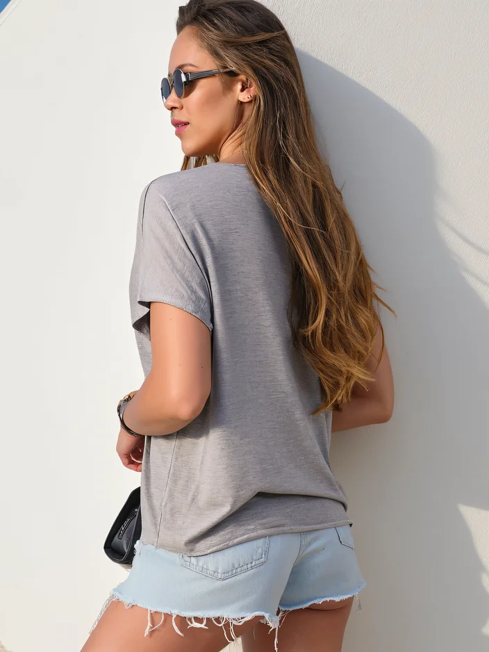 - Viscose női blúz rövid ujjakkal és csillogó befejezéssel – könnyű, fényes, és tele finom csillogással, tökéletes estélyekhez.
