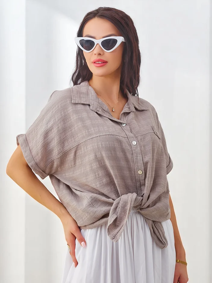 Royalfashion Női pamut ing domborítással és rövid ujjal
