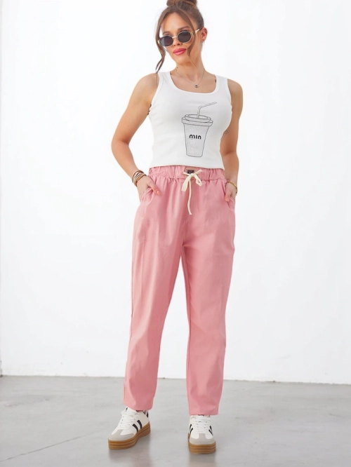Royalfashion pamut egyenes női nadrág deréknál megkötővel