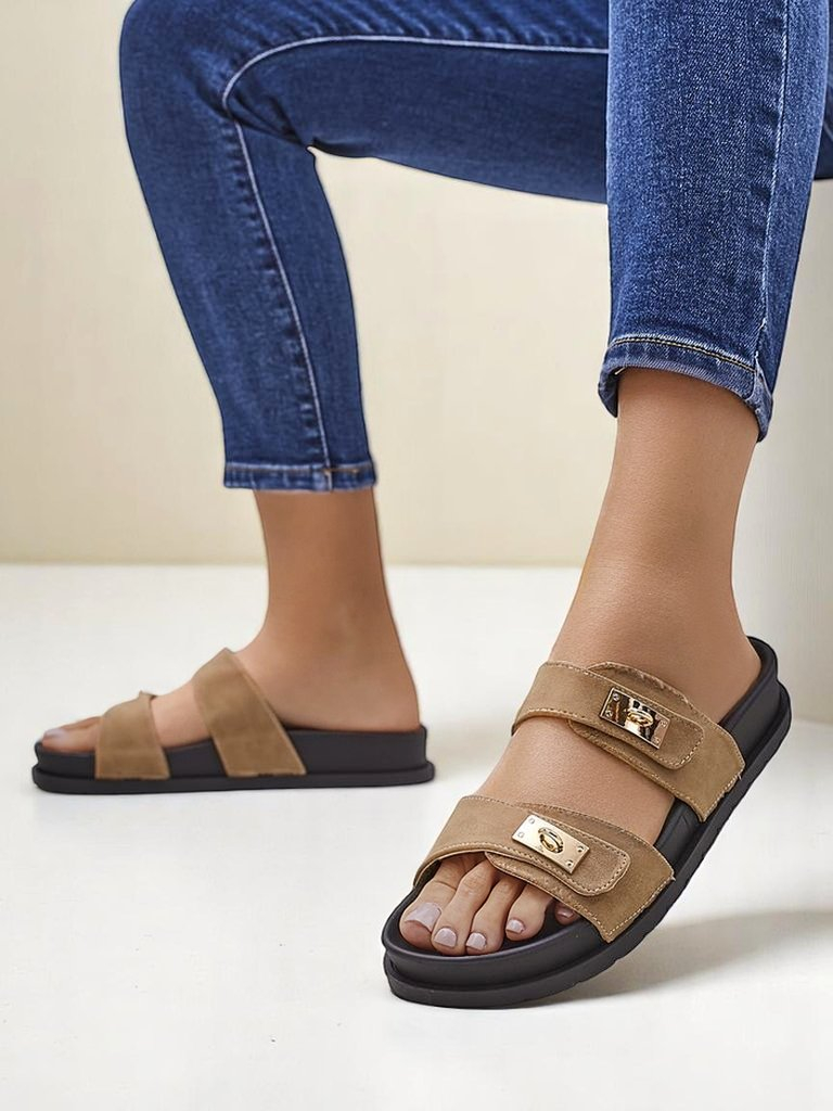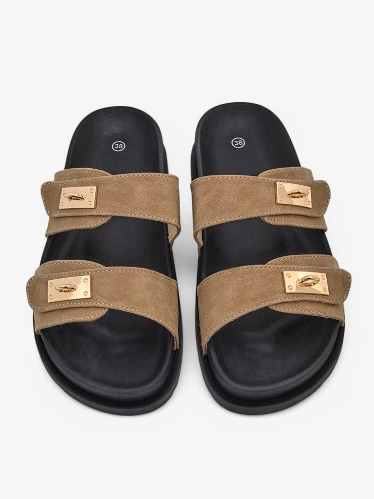 • Vastag talpú szandálok ötvözik a stílust és a kényelmet. Matt öko-bőr pántja a csatokkal együtt bájt ad, kiemelve az eleganciát. Az öko-bőr talpbetét minden lépésnél puhaságot és kényelmet biztosít. Ezek a szandálok tökéletesek a nyári napokra!