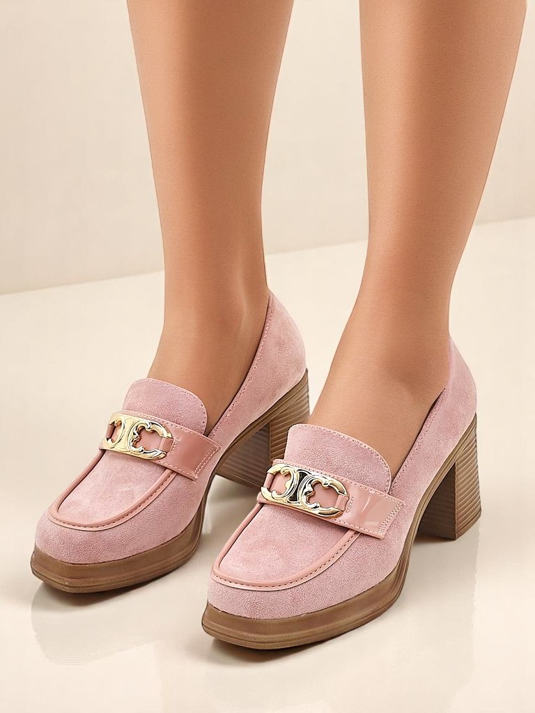 Przepiękne damskie mokasyny na wysokim słupku. Model w stylu casual jest wykonany z zamszowej skóry ekologicznej i eko skórzanej wkładki. Nosek zaokrąglony zdobiony subtelną ozdobą. Idealna baza dla wielu codziennych looków!