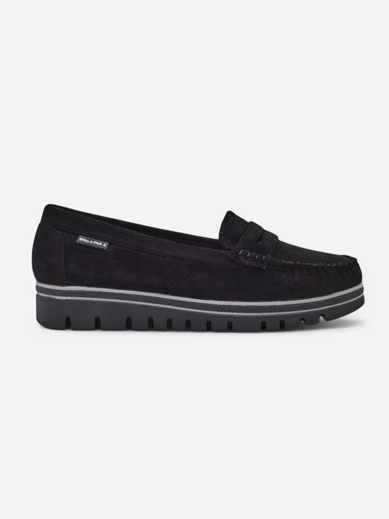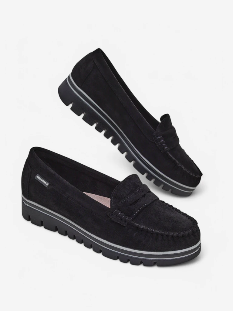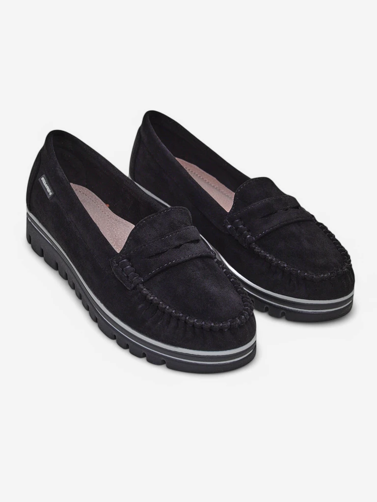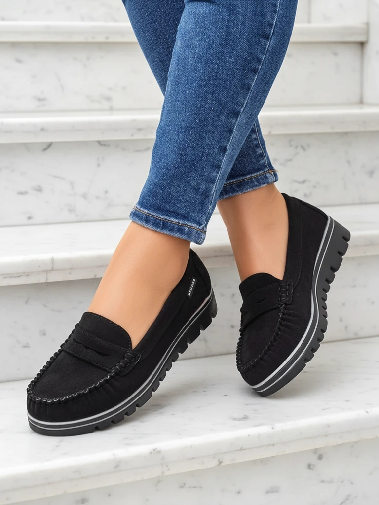 Fedezze fel az új Sabella fekete mokaszinokat, amelyek az eleganciát a kivételes kényelemmel ötvözik. Kiváló minőségű ökológiai velúrbőrből készültek, ezek a cipők nemcsak stílusosak, hanem a környezetre is odafigyelnek. A természetes bőr betét kiváló szellőzést és puhaságot biztosít, ami tiszta élvezetté teszi a viselésüket egész nap. A 3,5 cm magas lapos saroknak köszönhetően ezek a mokaszinok ideálisak munkához és alkalmi találkozókhoz a barátokkal.