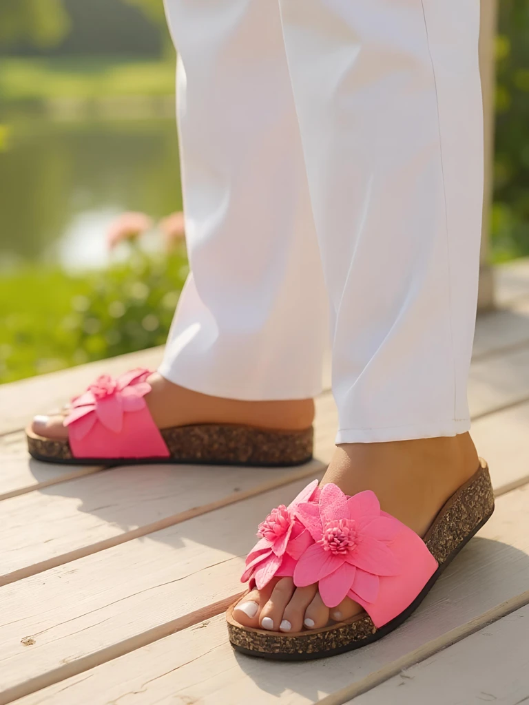 Fedezd fel a Flora Bella egyedi papucsokat – nőies, olasz stílus ihlette cipők, amelyek egyszerre kényelmesek és divatosak. A modell kiváló minőségű öko bőrből készült, puha, velúr felülettel, egész napos kényelmet biztosítva. A széles pántot egy látványos, háromdimenziós virág díszíti, amely finom, nőies jelleget kölcsönöz a cipőnek. A természetes parafaból készült talp könnyű, jól párnáz, és tökéletesen illeszkedik a láb formájához, növelve a kényelmet. A papucs belsejében kellemes, textil bélés található, mikroszálas bevonattal – ez egy lélegző és bőrbarát anyag, amely rendelkezik az Oeko-Tex tanúsítvánnyal, igazolva a biztonságos használatot. A Flora Bella papucs ideális választás a tavaszi-nyári szezonra – tökéletesen alkalmasak városnézésre, strandolásra vagy kertészkedésre is.**Előnyök és érzések a használat során:** - Könnyű, rugalmas parafa talp csökkenti a láb fáradtságát. - Puha, lélegző bélés kényelmet biztosít még nagy melegben is. - A díszítő virág kiemeli az egyéni stílust és magára vonzza a tekinteteket.**Ötletek a stílushoz:** 1. Párosítsd széles, vászonruhás ruhával és kalappal egy nyári sétához. 2. Add hozzá klasszikus 7/8-as farmernadrághoz és fehér inghez – tökéletes találkozóra a barátokkal. 3. Kombináld rövidnadrággal és virágos toppal – ideális kirándulásra vagy családi piknikre.**Ápolás és tárolás:** A papucsok szép megjelenésének megőrzése érdekében javasolt nedves ruhával tisztítani és hőforrástól távol szárítani. Száraz helyen tárold, lehetőleg cipőzsákban vagy az eredeti dobozban.**Trend figyelmeztetés:** A botanikai díszítések és a természetes anyagok jelenleg rendkívül népszerűek a divat világában. A Flora Bella tökéletesen illeszkedik a slow fashion trendhez és a természethez való visszatéréshez.