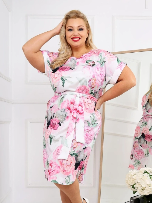 Royalfashion Női, térd fölé érő ruha rövid ujjakkal és rózsa nyakkal