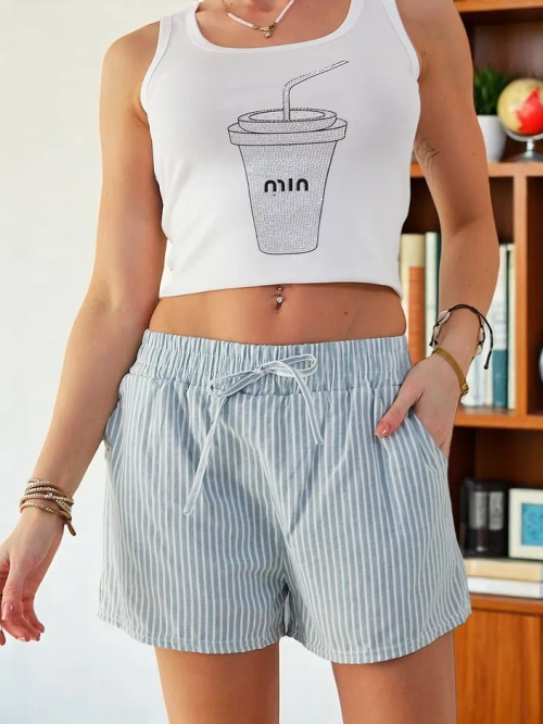 Royalfashion Női rövidnadrág derékpánttal és zsinórral csíkos mintával