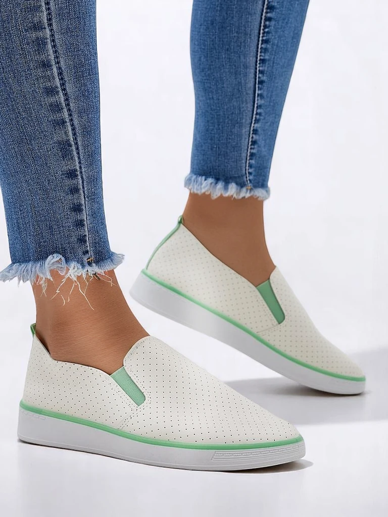• Perforált női slip-on sportcipők szintetikus bőrből. Szövet bélés. Ideális választás mindennapi viseletre!