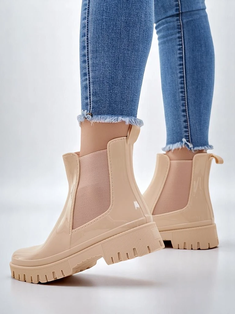 • Klasszikus női gumicsizma gumianyagból, lakkos felülettel. A talpbetét szövetből készült. A lábbeli tökéletes esős őszi napokra!
