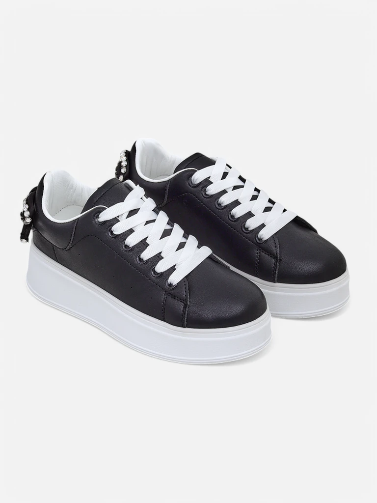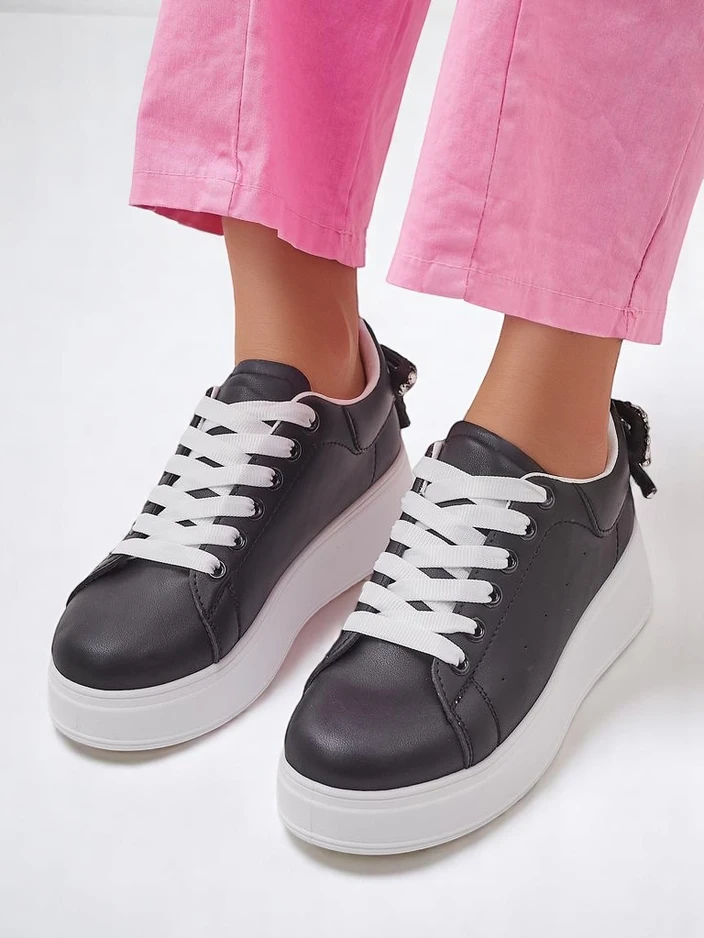 • Női edzőcipő öko bőrből, platformon. Fűzős modell, öko bőr talpbéléssel. A lábbeli fűzővel rendelkezik. Tökéletes stílusos szettek létrehozásához!