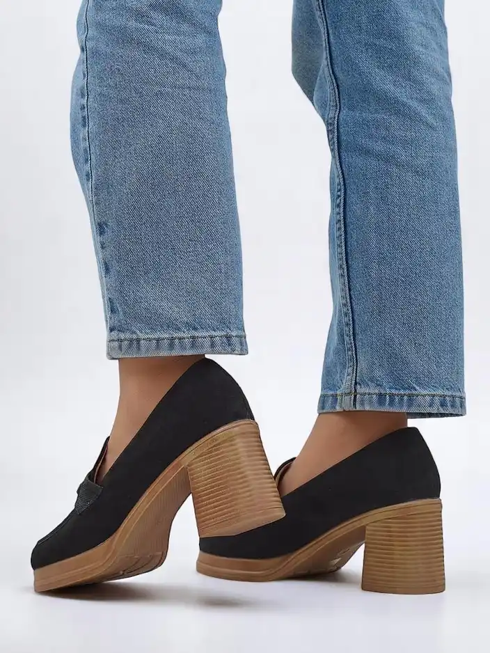 - Gyönyörű női tömbsarkú loaferek. Ez a casual stílusú modell környezetbarát velúrból készült, környezetbarát bőr talpbetéttel. Kerek orrú. Ideális alap számos mindennapi összeállításhoz!