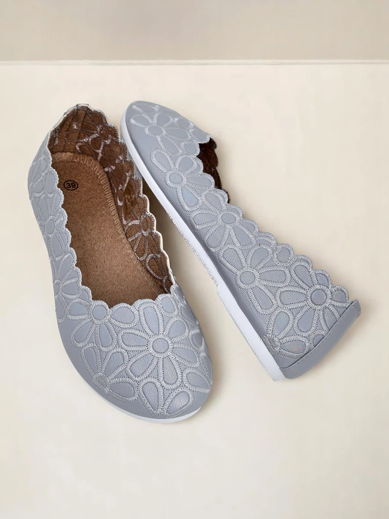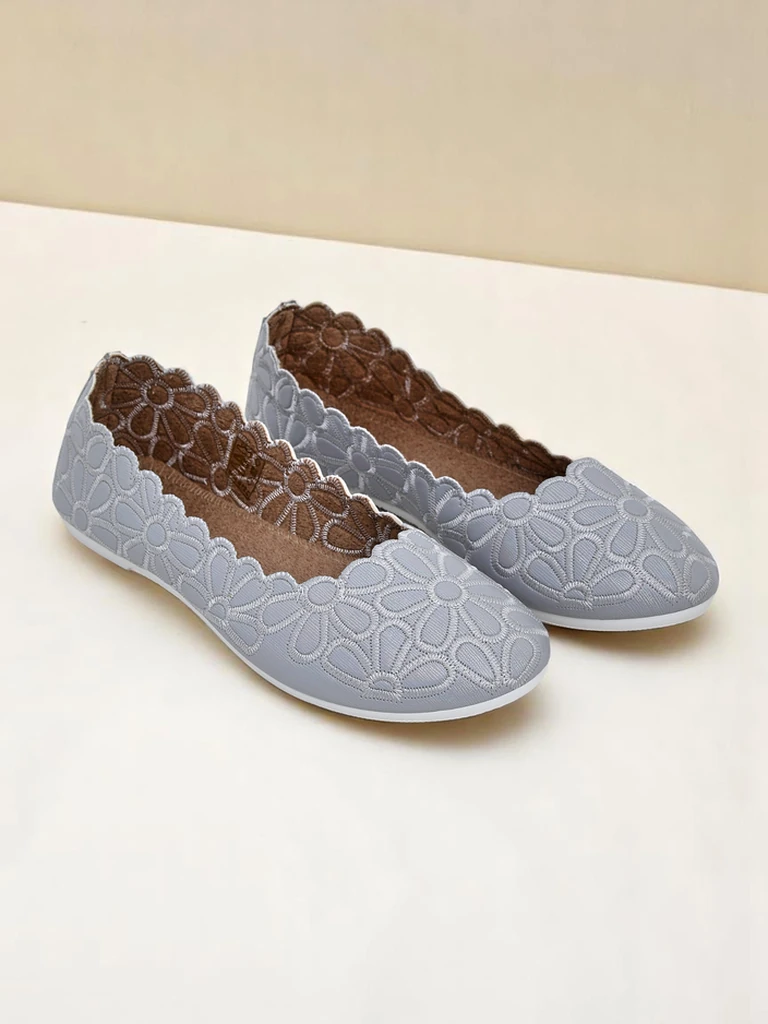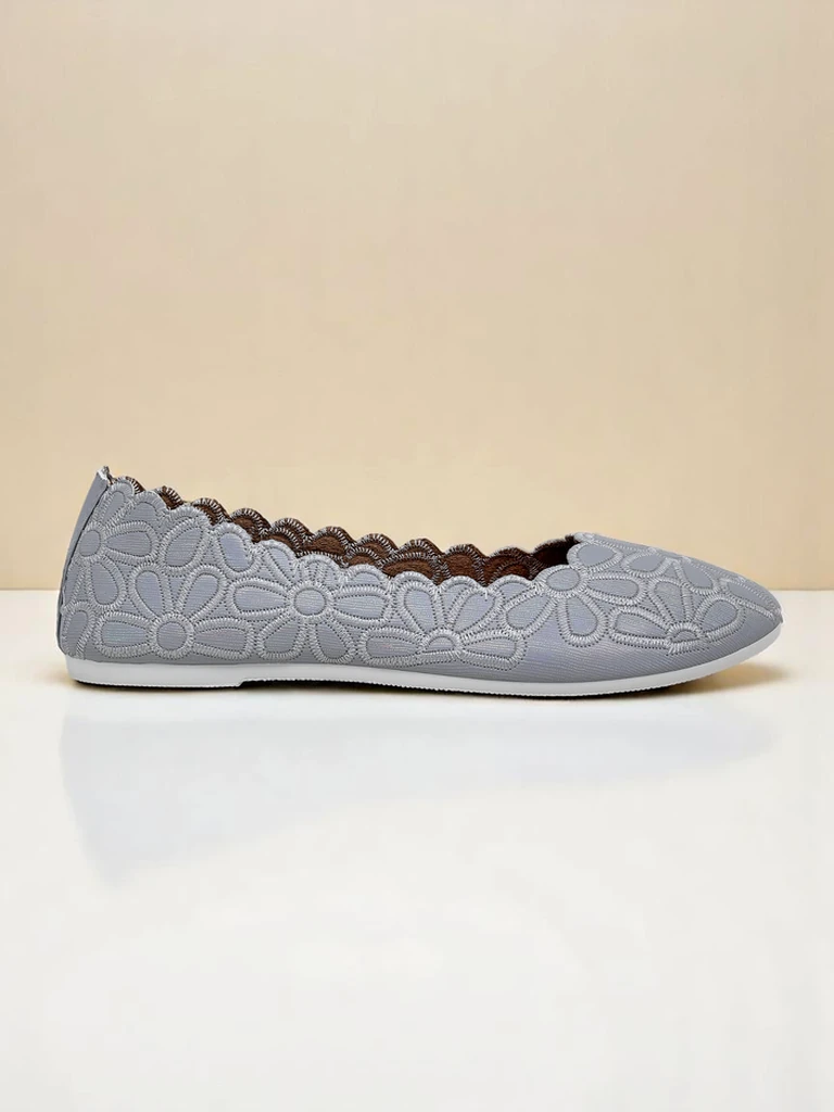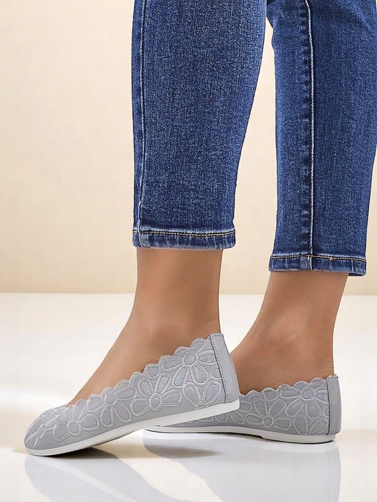 - Kivételes textilből készült balerinacipők kerek orral. A felsőrész finom virágos hímzéssel díszített. A puha textil talpbetét kényelmet biztosít. Tökéletesek elegáns és divatos összeállításokhoz!