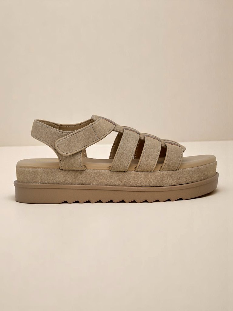 Női római stílusú szandálok puha öko velúrból. Az öko bőr talpbetét kényelmet biztosít, a tépőzáras rögzítés pedig megkönnyíti az illeszkedést. Tökéletes nyári stílusokhoz.