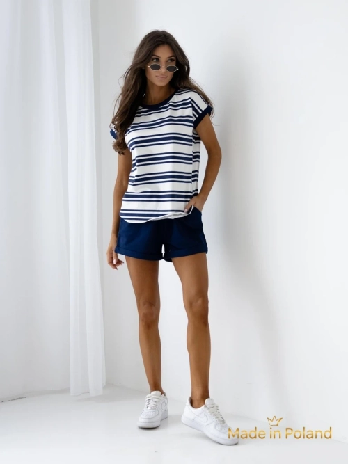 Royalfashion pamut női szett rövid ujjú felsővel és csíkos rövidnadrággal