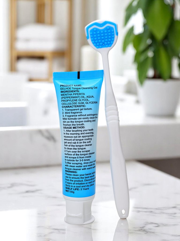 - Nyelvhigiéniai gél kefével, amely hatékonyan eltávolítja a baktériumokat, lerakódásokat és kellemetlen szagokat, támogatva a friss leheletet és az átfogó szájhigiéniát.