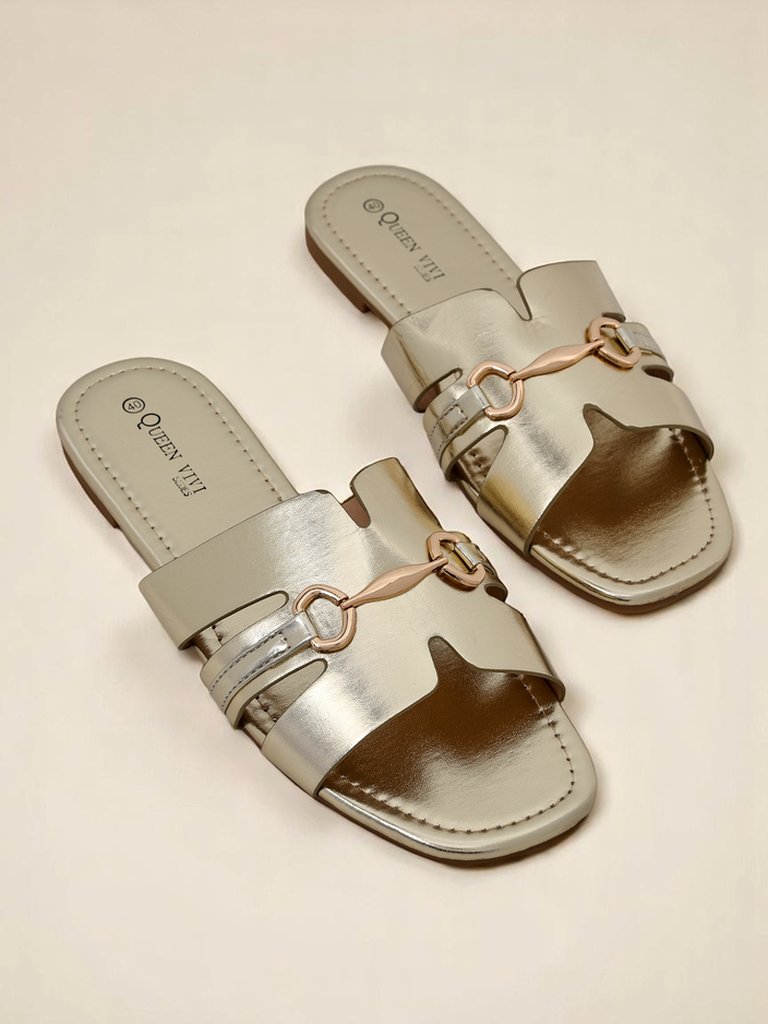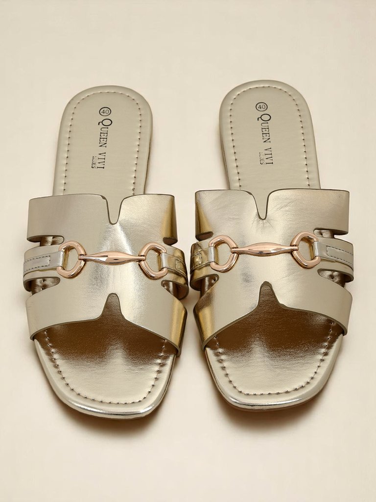 - Környezetbarát bőrből készült papucs, finom arany díszítéssel. Elegáns egyszerűség és kényelem, amely bármely nyári öltözékhez illik.