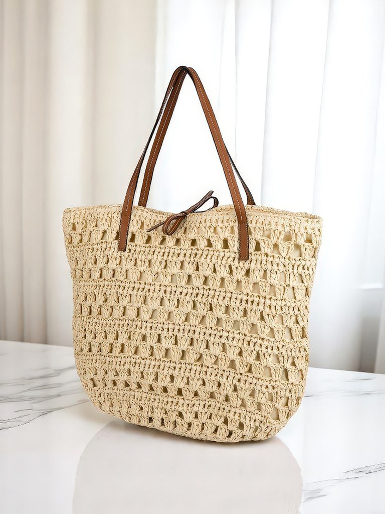 Royalfashion Nagy, szalmatáskából készült női kézitáska Természetes Klasszikus