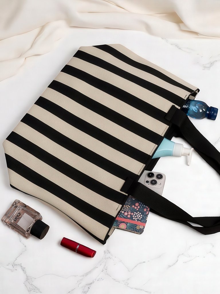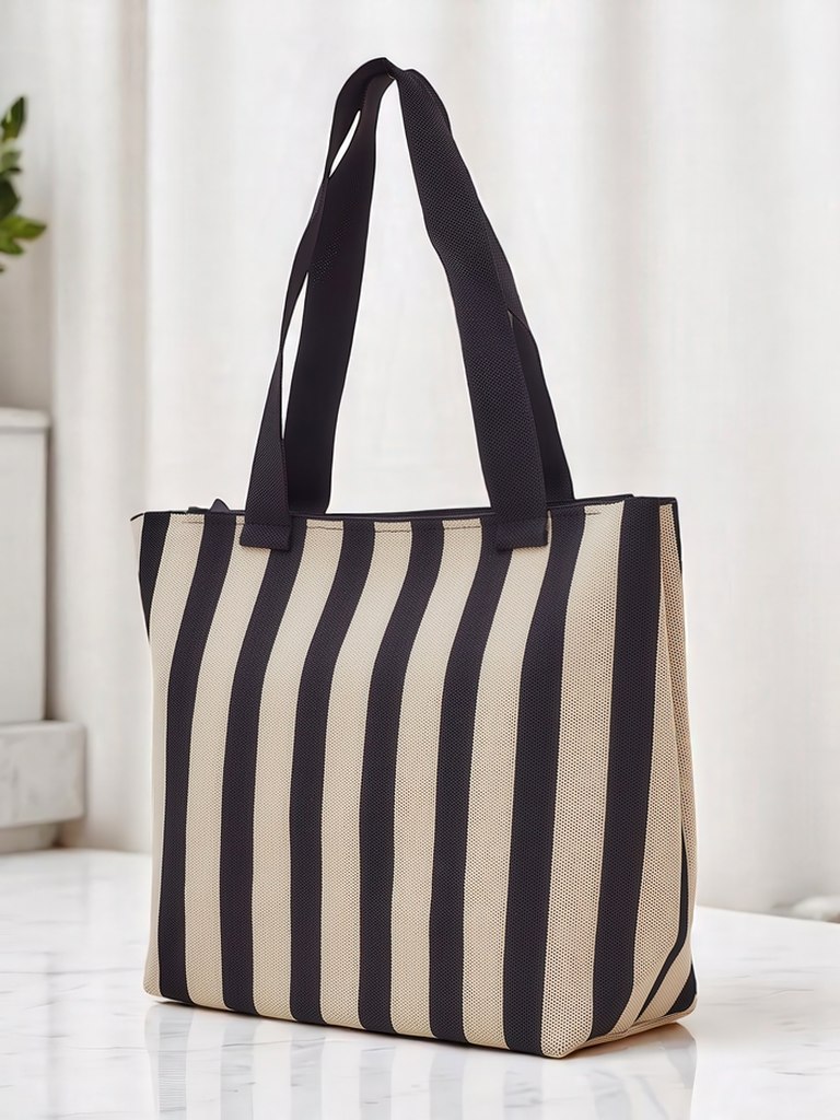 • Nagy méretű női szövet táska klasszikus csíkos mintával. 1 rekesszel, cipzáras záródással. Könnyű, tágas és stílusos – tökéletes vásárláshoz és mindennapi használatra!