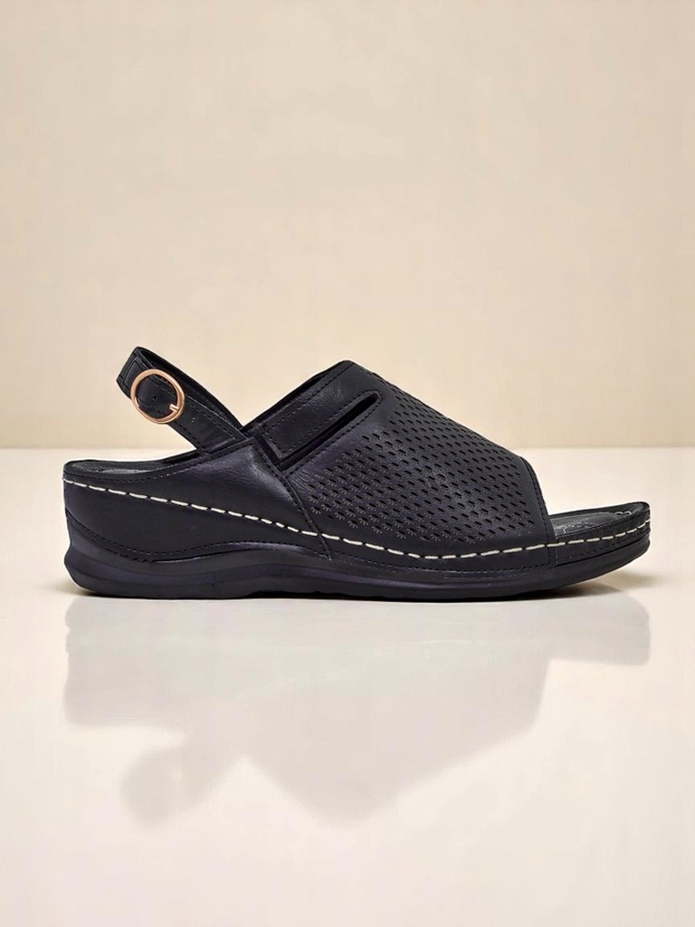 A Calcebianca szandál az olasz stílus, az antik hagyományok és a modern kényelem kombinációja. Kiváló minőségű természetes bőrből készültek, nemcsak esztétikus megjelenést, hanem tartós szilárdságot is garantálnak. A felsőrészen található lézerrel vágott minták kiváló szellőzést és divatos, finom vizuális hatást biztosítanak, amely illeszkedik a legújabb nyári cipőtrendekhez, enyhén retro jelleggel. A virágmintás bőr talpbetét és a finom, állítható pántos rögzítés biztosítja az egyéni igényekhez való igazodást, miközben védi a lábat és erősíti annak helyes elhelyezkedését.