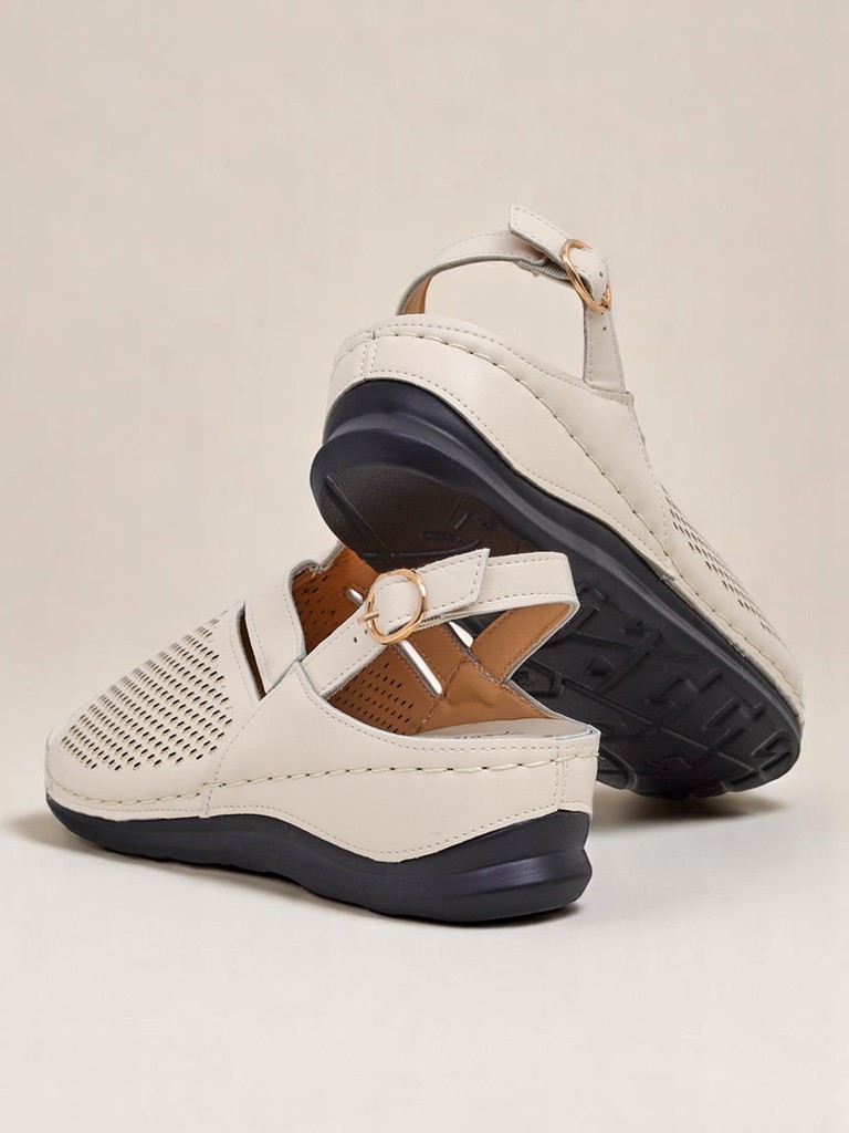 A Mira egy elegáns, öko bőrből készült szandál alacsony éktalppal. A zárt felsőrész és a csatos rögzítés kényelmet és stílust biztosít mindennapi és különleges alkalmakra.