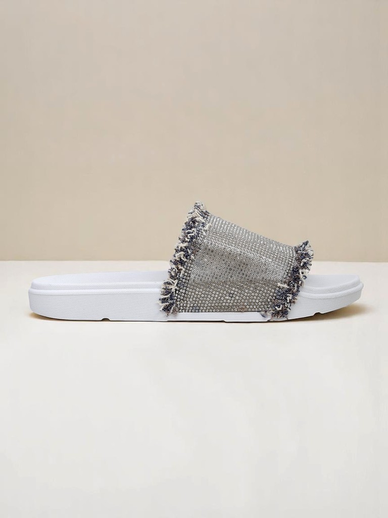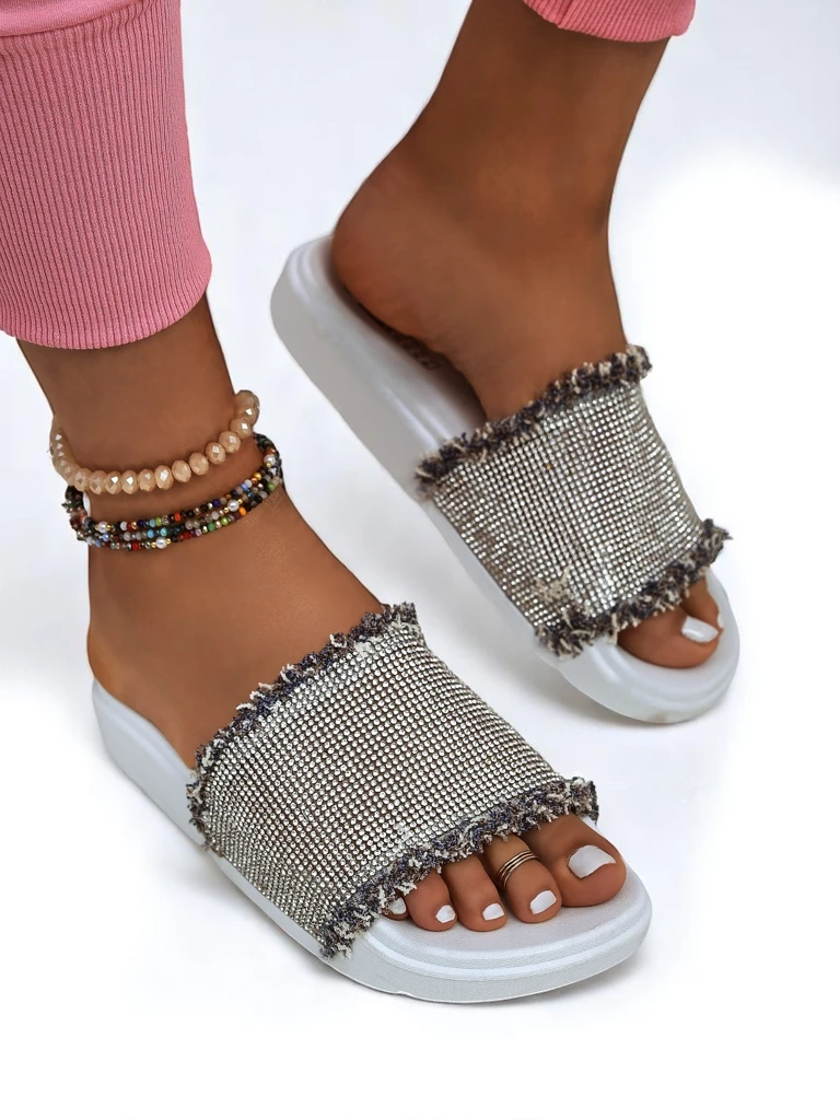 Az Aurelia Slide papucs a luxus és a kényelem kombinációja, amelyet az olasz design ihletett. A felsőrész kiváló minőségű textil hálóból készült, fényes szintetikus kristályokkal, amelyek exkluzív ragyogást kölcsönöznek a cipőnek. A finom, rojtos hatású szegélyek finoman művészi karaktert kölcsönöznek a papucsnak, utalva a legújabb streetwear trendekre.A rugalmas EVA habból készült talp rendkívül puhává és kényelmessé teszi a járást még egész nap is – ez az anyag könnyű, ellenáll a deformációnak és vízálló. A puha mikroszálas belső réteg finoman körülöleli a lábat és megakadályozza a horzsolásokat. A gyártás során nem mérgező, tanúsított anyagokat használtak (OEKO-TEX® Standard 100), biztosítva a bőr biztonságát.A könnyű és tartós Aurelia Slide papucsok tökéletesek a városban, a nyári sétákhoz, valamint a strandon vagy a szálloda medencéjénél. Univerzális kialakításuk tökéletesen illeszkedik a különböző stílusokhoz:1. Sportos lazaság: kombináld leggingsszel és oversize pólóval a mindennapi sétához.2. Városi casual: párosítsd farmer rövidnadrággal és vászon inggel egy kötetlen találkozóhoz.3. Nyári elegancia: viseld könnyű maxi ruhával és finom ékszerekkel, hogy lenyűgöző, nyári megjelenést hozz létre.Gondoskodj az Aurelia Slide papucsodról úgy, hogy puha, nedves ruhával áttörlöd, és kerülöd az agresszív tisztítószereket – így hosszabb ideig megőrzik a fényüket. Száraz, szellős helyen tárold; ne tedd ki hosszabb ideig közvetlen napfénynek, hogy elkerüld az elszíneződést.A lábbeli illeszkedik a szezon globális trendjeibe – a fény, a 3D textúra, valamint a kényelem és az extravagancia kombinációja dominál a kifutókon és a legnagyobb európai városok utcáin. Az Aurelia Slide ideális választás azoknak a nőknek, akik értékelik a stílust és a kényelmet minden nap.