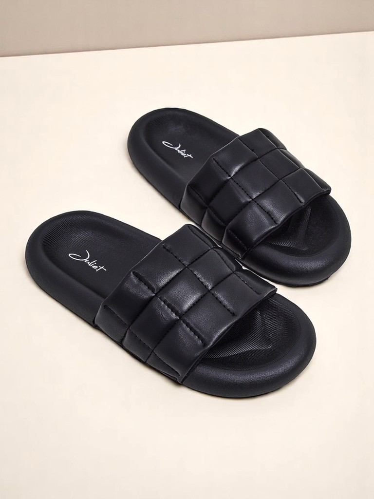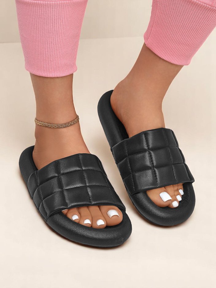 Stílusos női papucs öko bőrből, steppelt felsőrésszel és gumitalppal. Kényelmes, könnyű és divatos – ideális nyárra, sétákhoz és mindennapi, laza stílusokhoz.