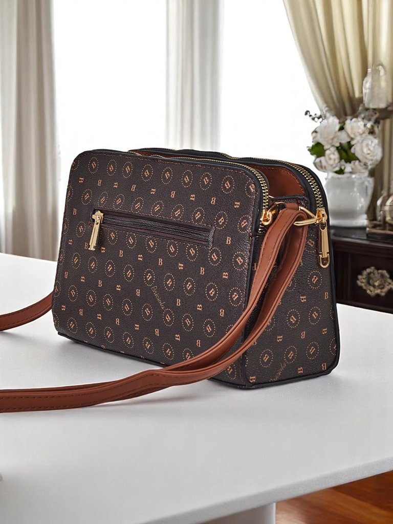 - Kézitáska ökobőrből, merész mintával. Két rekesszel, külső zsebbel és állítható pánttal rendelkezik. Cipzárral záródik—tökéletes mindennapi használatra, stílusos és kényelmes.