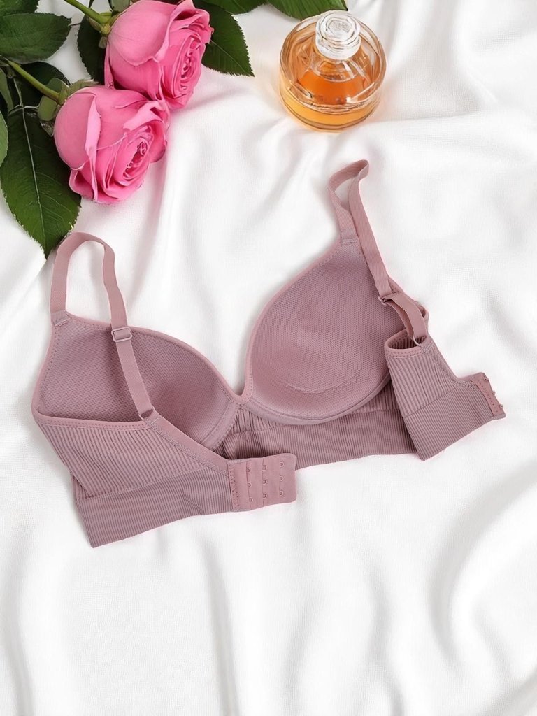 • Női párnázott sportmelltartó állítható pántokkal, kapocs nélkül. A bordázott anyag stílust és kényelmet ötvöz – tökéletes edzésekhez és mindennapi viselethez.