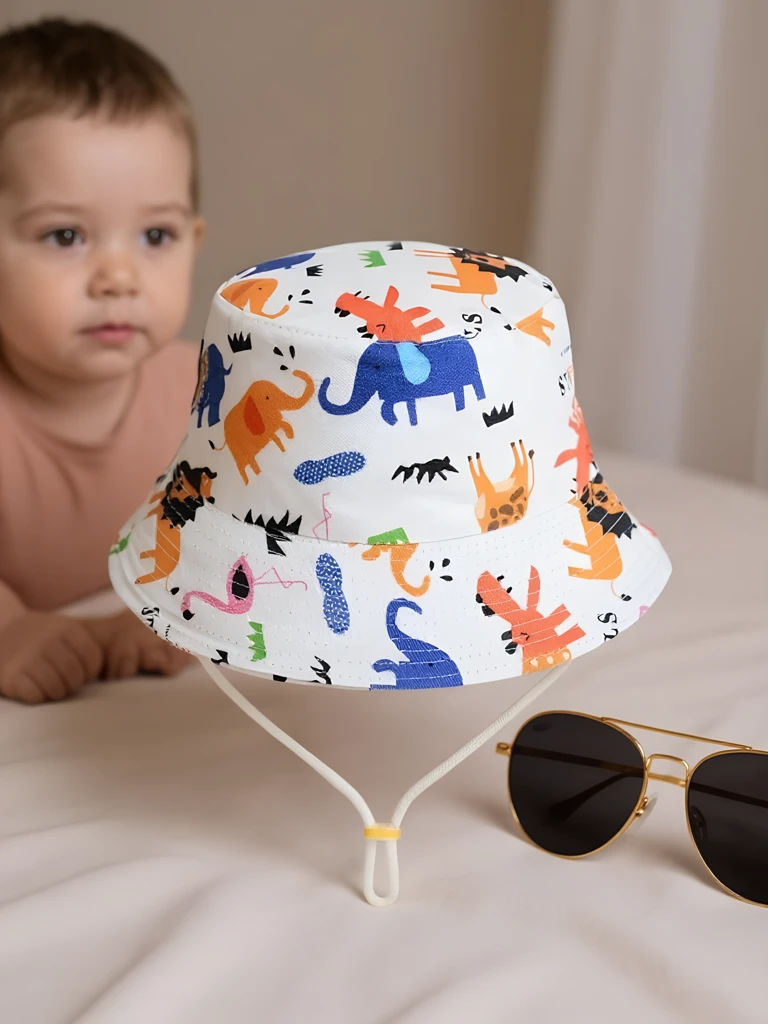 - Színes, vidám mintás gyermek vödörkalap. Könnyű és kényelmes, tökéletes a nyári napokra. Véd a napsütéstől, és energiát ad minden gyermek öltözékéhez!