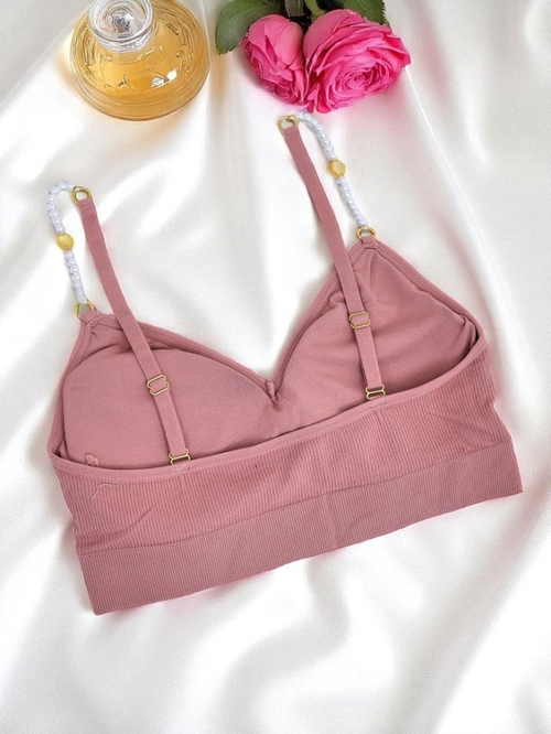 - Női bélelt sportmelltartó dekoratív, állítható pántokkal, kapocs nélkül. Kivehető betétek. Bordázott anyaga stílust és kényelmet ötvöz – tökéletes edzéshez és mindennapi viselethez.