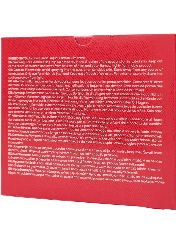 Összetevők: Denaturált alkohol, Aqua, Parfüm, Limonene