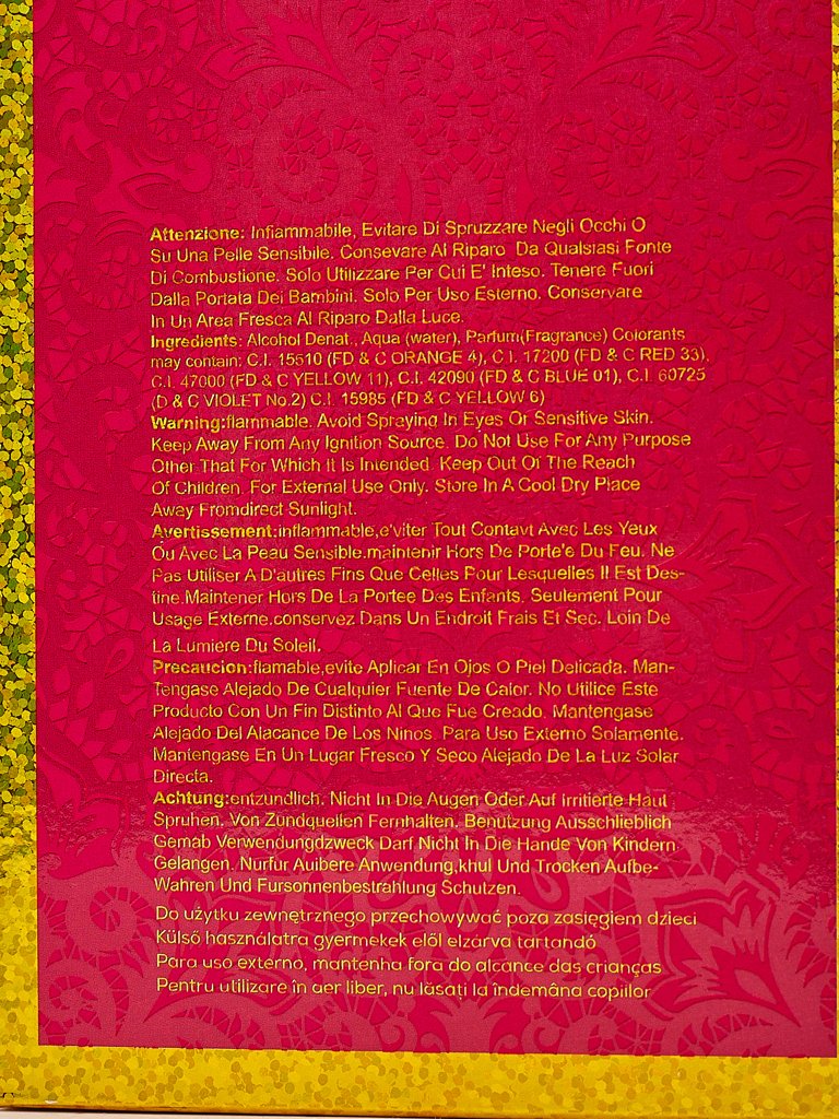 - Lédús vad bogyós gyümölcsök és mandarin nyitják az illatot, amely egy virágos szívbe fejlődik gardéniával, jázminnal és lonccal. A meleg alapot praliné, karamell és vanília adja, mely édes eleganciába burkolja az érzékeket.
