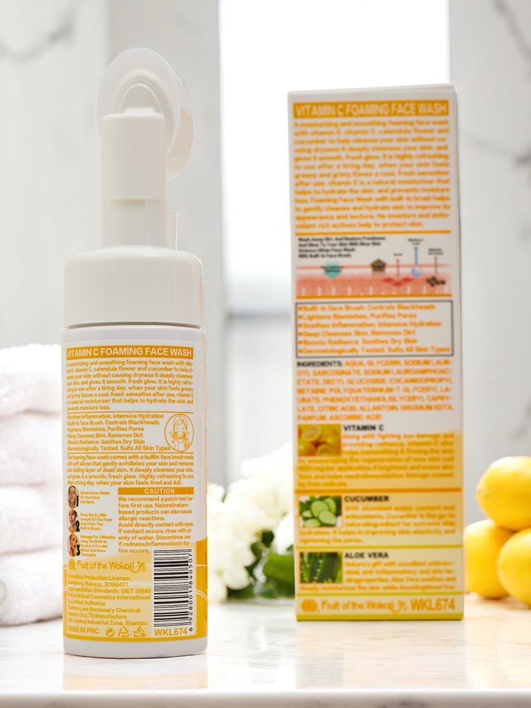 - Tisztító arctisztító hab C-vitaminnal és kefével. Gyengéden eltávolítja a szennyeződéseket, ragyogóbbá teszi a bőrt, öregedésgátló hatású, friss, sima és sugárzó arcbőrt hagy maga után.