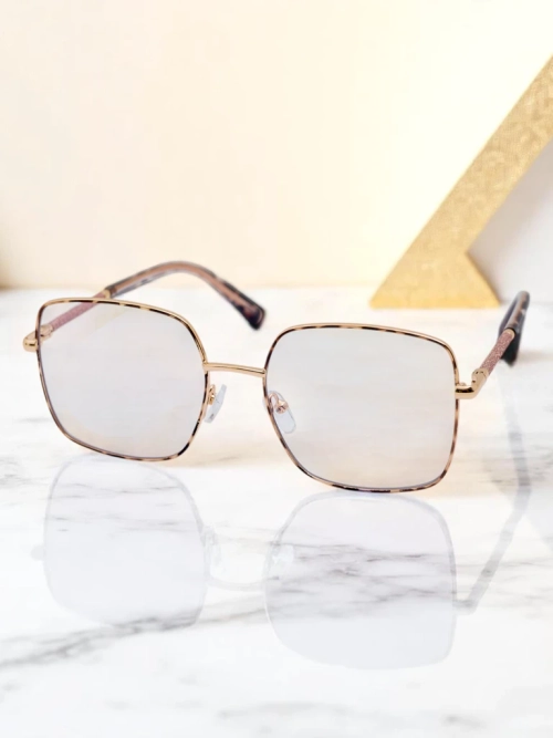 • Stílusos napszemüveg szögletes, keret nélküli lencsékkel. Különböző színekben elérhető. Arany részletek és könnyű szárak biztosítják a divatos megjelenést és a kényelmes viseletet.