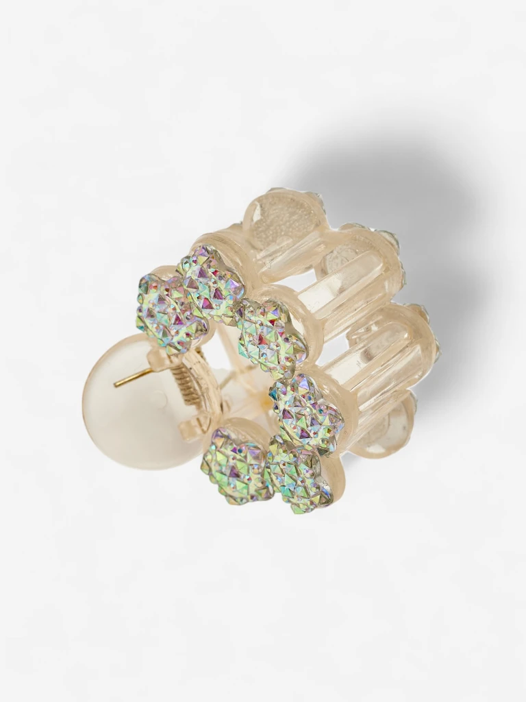 Az Aurora Flora hajcsat egy különleges kiegészítő, amely eleganciájával és ragyogásával nyűgöz le. Kiváló minőségű, átlátszó műanyagból (BPA-mentes) készül, finom kidolgozással és nagy tartóssággal rendelkezik, így tökéletes a mindennapi használatra. A díszítő részt aurora borealis stílusú, csillogó akrilkristályokkal borított virágok alkotják, amelyek látványosan tükrözik a fényt és vonzzák a tekintetet. A rugós mechanizmus lehetővé teszi a frizura gyors és biztonságos rögzítését, a erős fogás pedig stabilitást biztosít még intenzív mozgás közben is.