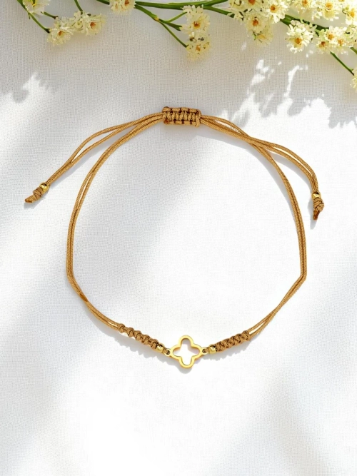 - Állítható zsinór karkötő tengerész stílusban, finom arany díszítéssel ellátva. Könnyű és elegáns, tökéletes a nyári napokra. Bármilyen öltözethez hozzáad egy kis arany ragyogást, ötvözve a tengerparti hangulatot egy csipetnyi luxussal. Tökéletes a strandr