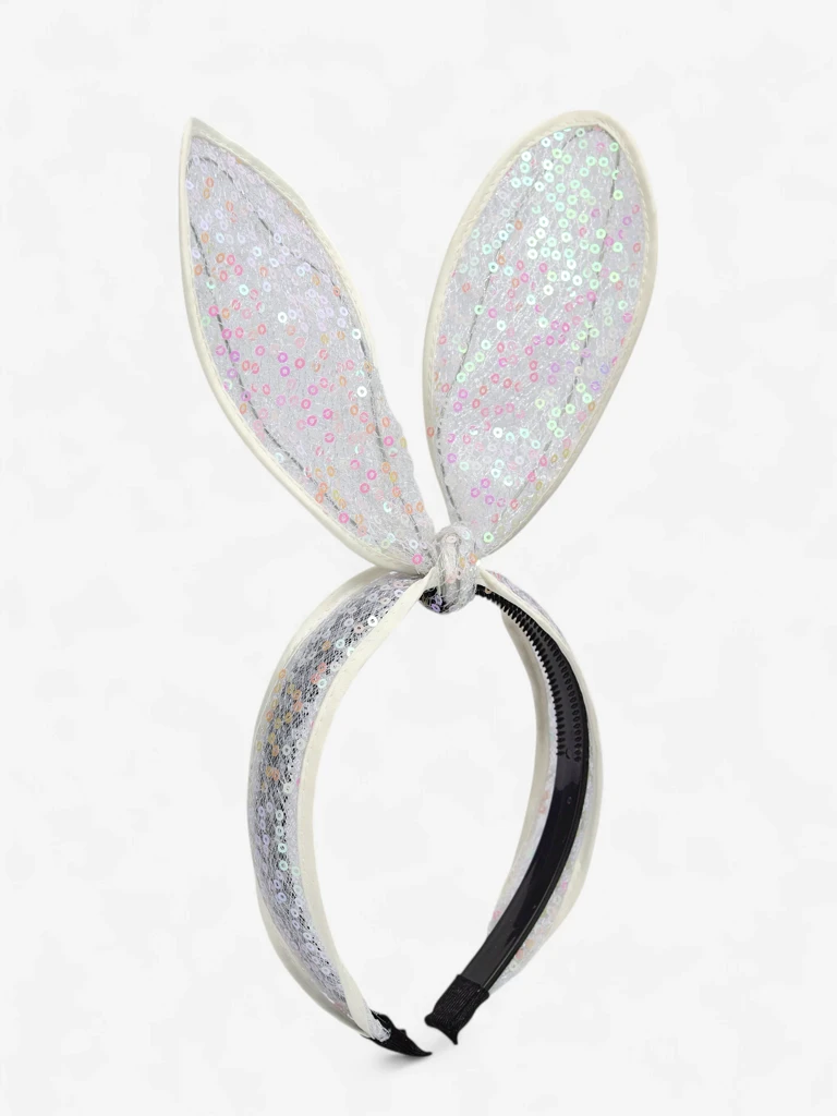• Mesés gyermek hajpánt nyuszifülekkel, melyeket flitterek borítanak. Könnyű, rugalmas és csillogó – tökéletes partikra, játékra és mindennapi stílusokhoz a „wow” hatás érdekében.