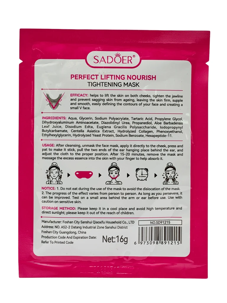A Sadoer Venera V-line lifting maszk hidratálja és feszesíti az arcbőrt. Csökkenti a ráncokat, javítja az arc formáját és kontúrját.
