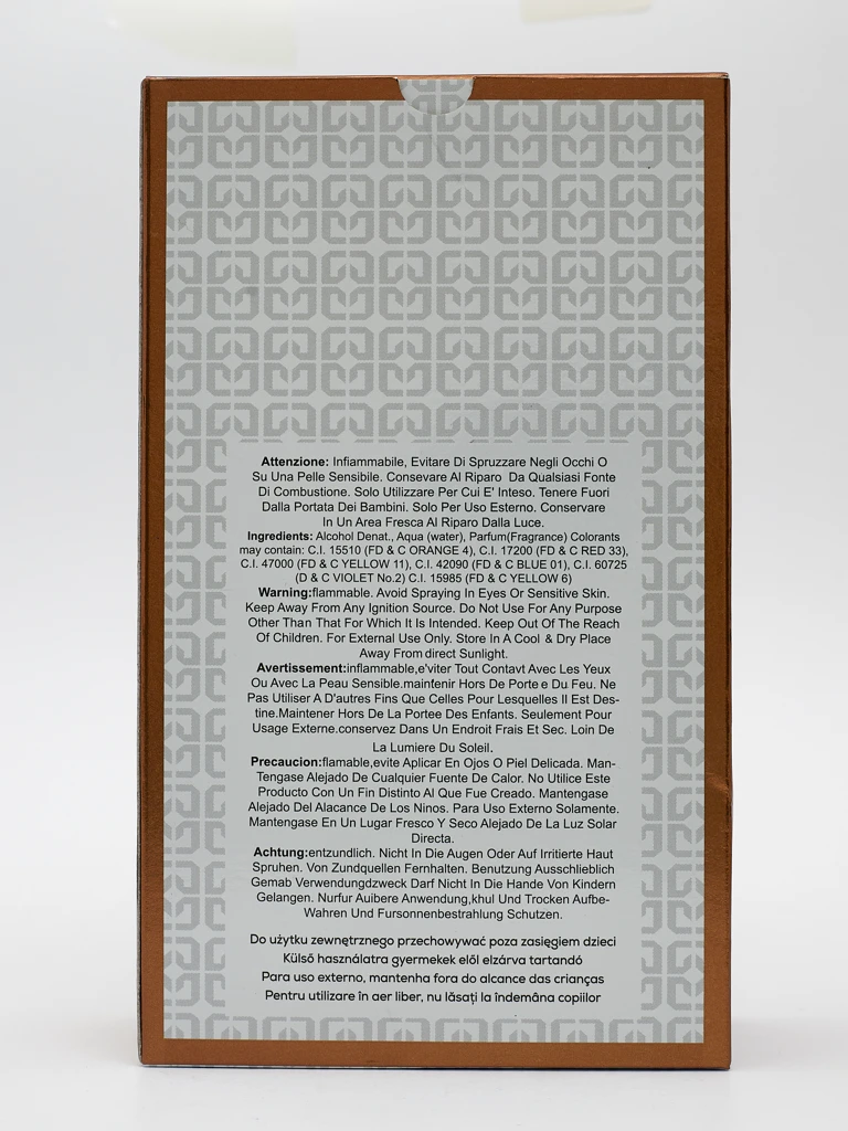A citrom, a bergamott és a levendula friss, aromás akkorddal nyitja meg az illatot. A kardamom, az ibolya levelei és a zsálya gyógynövényes mélységet adnak a szívben. A cédrus, a pacsuli és a pézsma alapja elegáns, tartós befejezést biztosít.