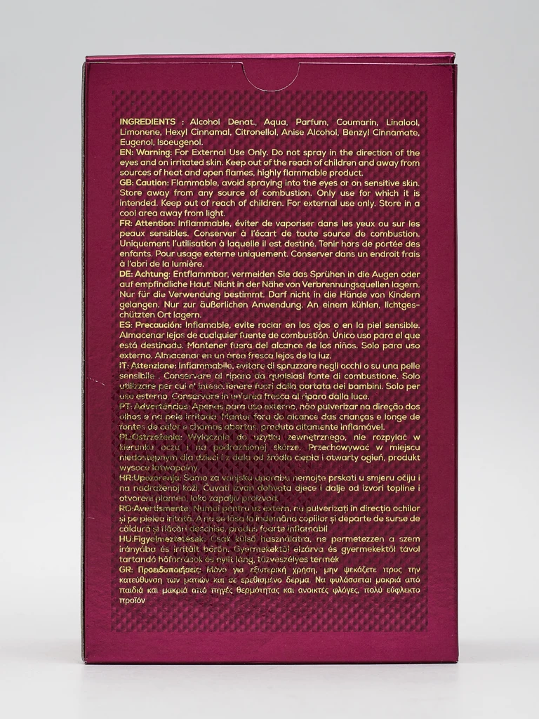 - Egyedi és érzéki parfüm, amely keserű mandula, likőr és lédús cseresznye jegyekkel nyit. Szívében szilva, rózsa és jázmin akkordjai bontakoznak ki, mély, fűszeres alapba fejlődve, ahol vanília, tonkabab, fa és fűszerek dominálnak.
