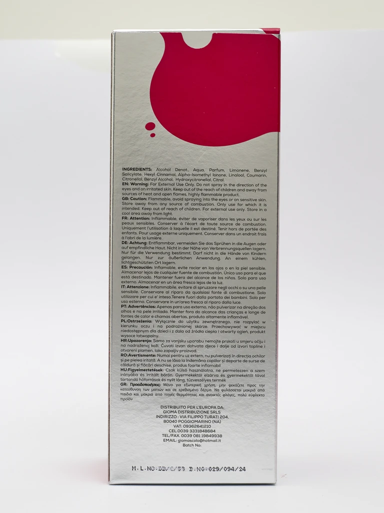 • Energizáló parfüm, amely elbűvöl egy gyümölcsös, málnás, citromos és mandarinos nyitánnyal. A szív jegyeiben virágos, érzéki kompozíció gyömbérrel és borostyánnal. Az ölelő alapillatot vanília, karamell és fás akkordok adják,