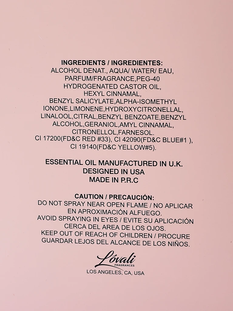 • Egy érzéki és kifinomult illat, amely mandarin, frézia és rózsabors jegyekkel nyit. A szívben jázmin, írisz és rózsaszín rózsa bontakozik ki, míg a kompozíciót a patchouli, szantálfa és borostyán meleg alapja teszi teljessé.