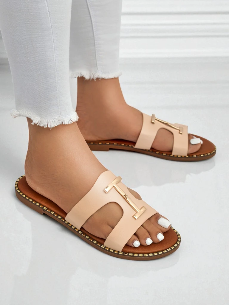 Sandalie Italis to wyjątkowe skórzane klapki damskie inspirowane włoską elegancją. Cholewka wykonana jest z wysokogatunkowej, miękkiej ekoskóry o gładkiej strukturze, która zapewnia trwałość i komfort użytkowania nawet przy codziennym noszeniu. Skóra syntetyczna, użyta w produkcji tego modelu, została poddana certyfikowanemu procesowi garbowania wolnemu od szkodliwych substancji, przez co jest bezpieczna dla skóry. Wnętrze klapek to przyjazna stopie, oddychająca wkładka pokryta mikrofibrą, która zwiększa przyjemność noszenia oraz amortyzację każdego kroku. Charakterystycznym elementem modelu Sandalie Italis jest stylowa aplikacja w kolorze złota w kształcie litery T, nawiązująca do klasycznych akcentów rzymskich i włoskiego designu. Efektowne wykończenie podeszwy drobnymi złotymi zdobieniami subtelnie podkreśla luksusowy charakter produktu. Podeszwa z wysokogatunkowego, elastycznego tworzywa sztucznego gwarantuje doskonałą przyczepność do podłoża. Zalety klapek Sandalie Italis: - Modny, minimalistyczny wygląd idealny na sezon wiosna-lato. - Lekkie, wygodne i łatwe do założenia nawet na cały dzień. - Uniwersalna kolorystyka pasująca do wielu stylizacji – od casualu po elegancję. Inspiracje modowe – jak stylizować Sandalie Italis: 1. Na co dzień: Zestaw klapki z jasnymi dżinsami typu skinny, białą koszulą i wiklinową torebką dla stylu codziennego, miejskiego. 2. Na plażę: Połącz z lekką sukienką maxi w pastelowych kolorach i dużym kapeluszem na upalne dni. 3. Na wieczorne wyjścia: Noś Sandalie Italis do plisowanej spódnicy midi i dopasowanego topu w odcieniach brązu oraz złotej biżuterii. Pielęgnacja i ochrona: Przecieraj cholewkę wilgotną szmatką, unikaj długotrwałego kontaktu z wodą i ekspozycji na bezpośrednie słońce. Jeśli chcesz zachować nieskazitelny wygląd klapek, przechowuj je w przewiewnym miejscu i używaj specjalnych środków do czyszczenia ekoskóry. Trendy: W sezonie lato 2024 minimalistyczne klapki z metalicznymi detalami i neutralną kolorystyką należą do najmodniejszych akcentów garderoby. Model Sandalie Italis to must have dla każdej kobiety ceniącej nowoczesne, lecz ponadczasowe rozwiązania obuwnicze.