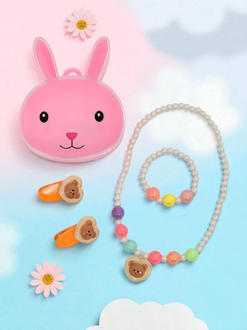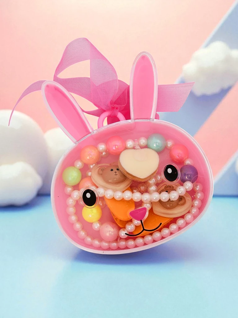 Bambina Dolce ékszerkészlet gyerekeknek – aranyos nyuszi táska, gyöngyök, klipszek, tökéletes ajándék egy kislánynak.